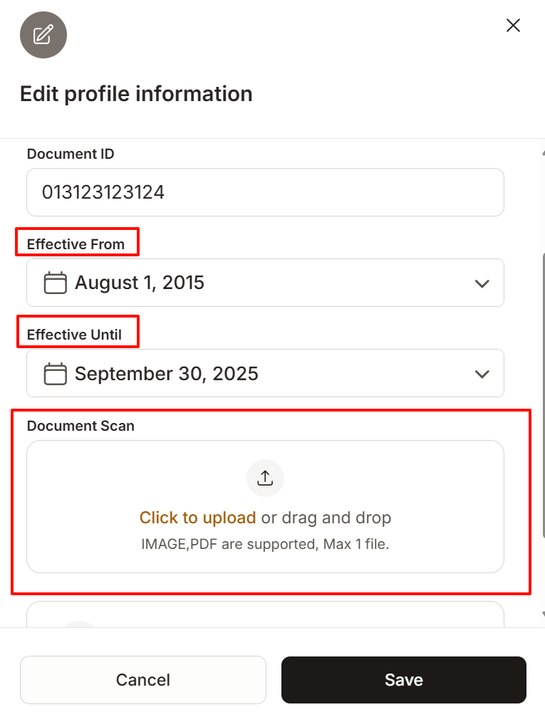 - Update the "Effective From" & "Effective Till" field with the new expiration date of your ID.