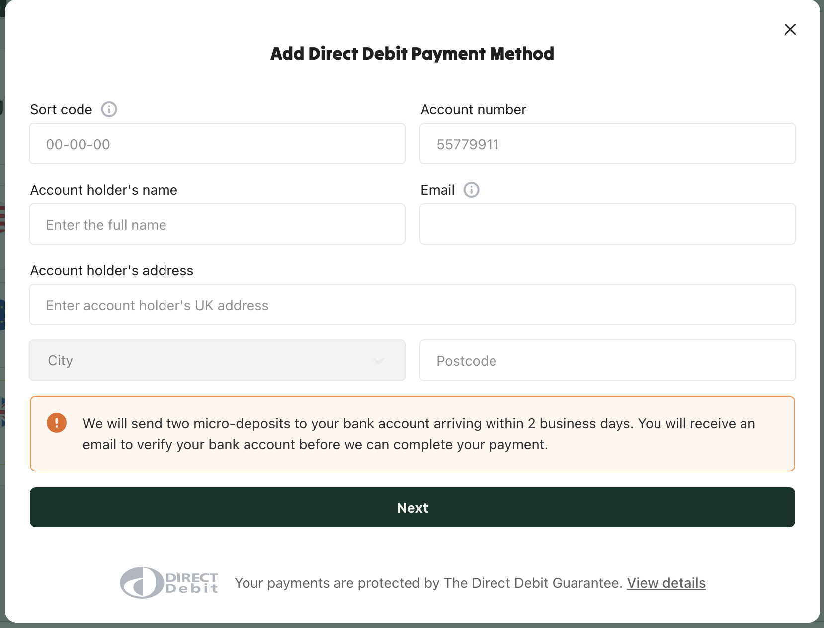 To ensure your payments are made on time, we recommend enabling BACS Direct Debit